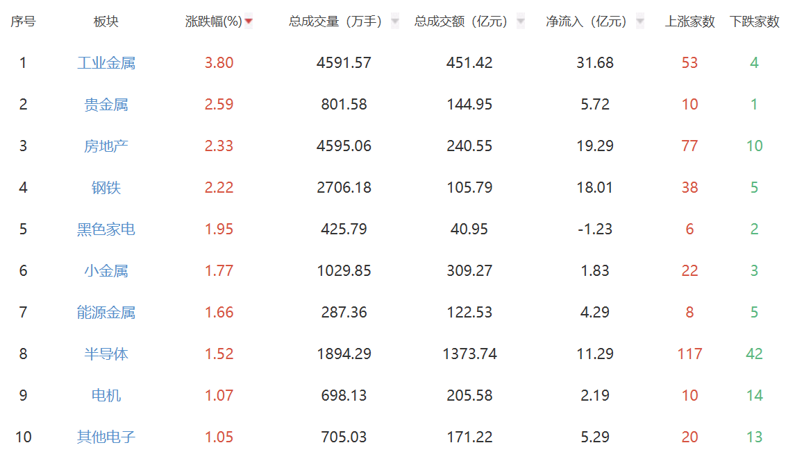 北京中国经济网络报道,9月12日,三个主要指数上升并在早晨下降。至于日本关闭,上海综合指数为3884.71点,增加了0.24%;深圳成分指数为12999.45点,增加了0.15%; Chinext指数为3037.83点,降低了0.52%。在工业部门,工业金属,贵金属,房地产和其他领域的中心,而葡萄酒,饮酒,游戏和其他领域则是否认最高的。 A股市场部门的增加和崩溃的排名